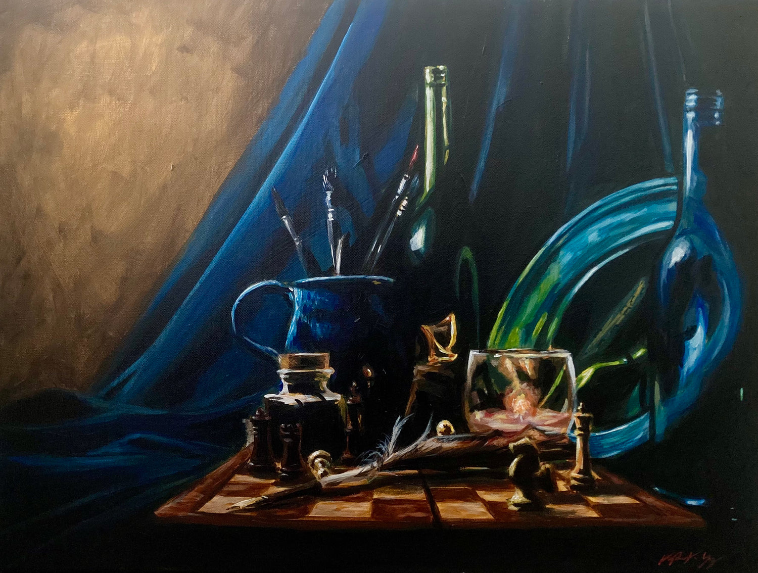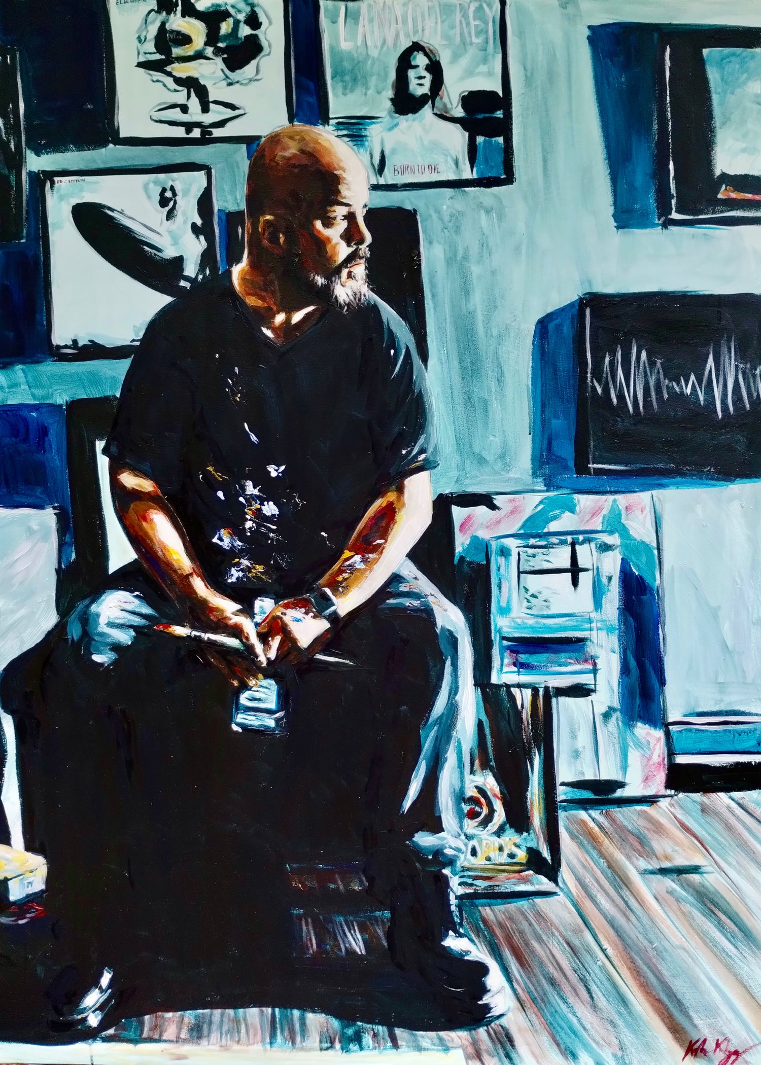I work primarily in acrylic paints to create dynamic and emotive artwork.